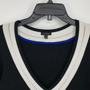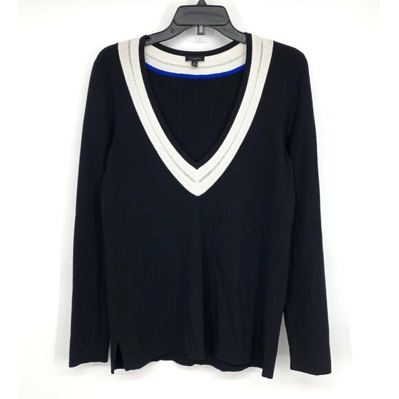 Talbots Sweater Womens Medium Black Varsity Stripe V Neck Pullover Long Sleeve Tennis. Great pre-owned condition.