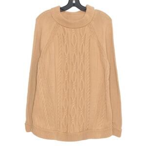 Talbots Sweater Cable Knit Cowl Neck Cozy Neutral Minimalist Cottage Brown XL