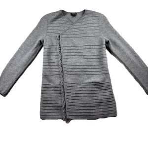 Talbots Sweater Cardigan 100% Merino Wool Open Front Fringe Gray Petite S/M C152