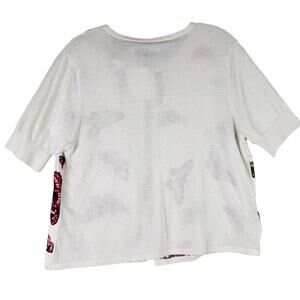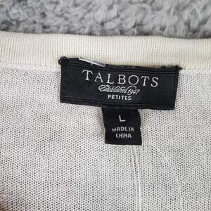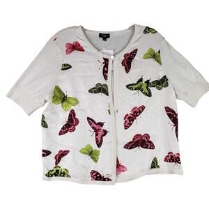 Talbots Sweater Cardigan Silk Butterflies Women’s Size Large L Petite White New