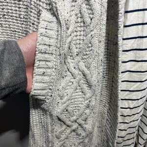 Talbots Sweater Coat Jacket White Gray Belted Lined Pockets Casual Comfy Cozy XL