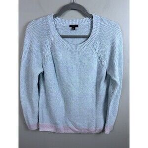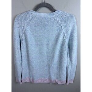 Talbots Sweater Cotton Linen Blend knit marbled blue pink Trim Petite Medium
