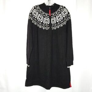 Talbots Sweater Dress Sz XL Black White Fair Isle 1/4 Zip Mock Neck