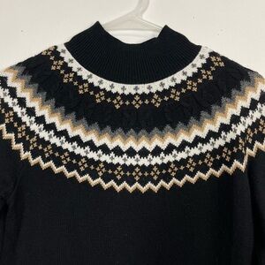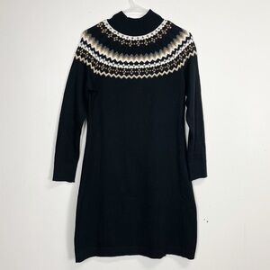 Talbots Sweater Dress Womens XS Black Mock Neck Fair Isle Long Sleeve Knit