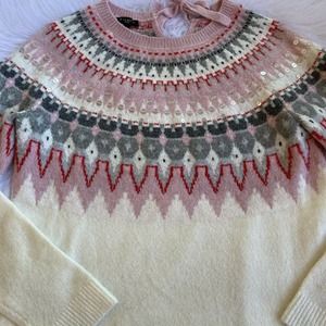 Talbots Sweater Knit Womens Sz S Petite Tie Neck Sequins Holidays Pullover.