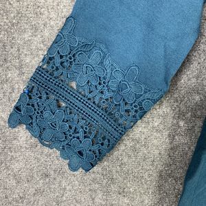 Talbots Sweater Long Sleeve With Crochet Cuffs Fine Knit Women L Teal Green