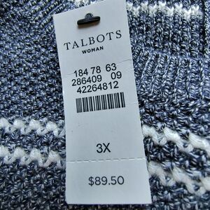 Talbots Sweater NEW 3X Gray White Striped Pullover Cotton Blend Minimal Capsule