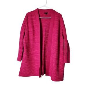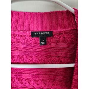 Talbots Sweater Open Front Cardigan Size 1X Pink Cable Knit 3/4 Sleeve Cotton