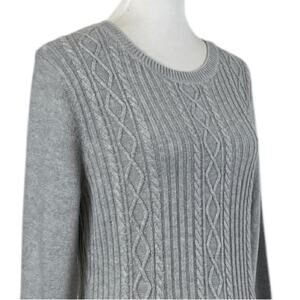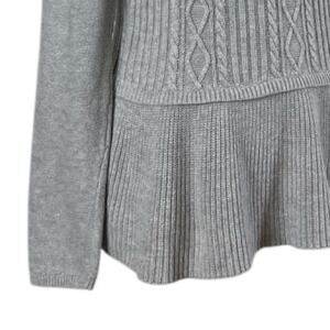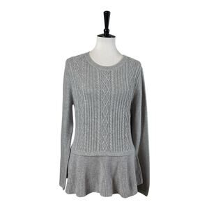 Talbots Sweater Peplum Crew Neck Cable Knit Light Gray Women’s Size Large
