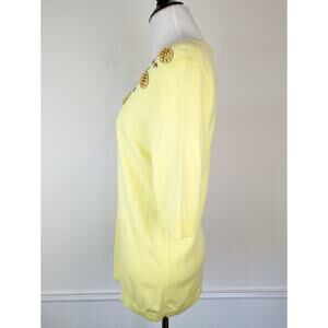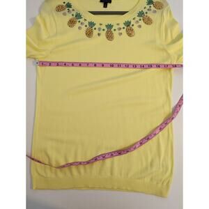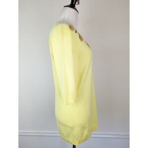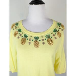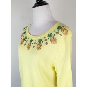 Talbots Sweater Pineapple Beaded Sequins Spring Summer Yellow Novelty Size M