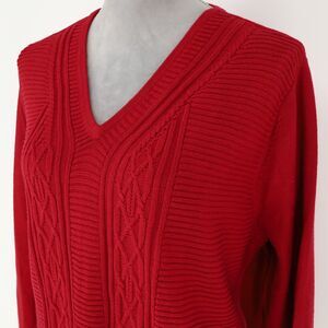 Talbots Sweater Plus Size 3X Red Cable Knit Cotton Pullover V-Neck Festive Fall Winter
