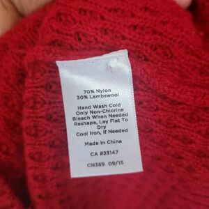 Talbots Sweater Red Crew Neck Nylon Lambswool Blend Cable Knit Pullover Size XL