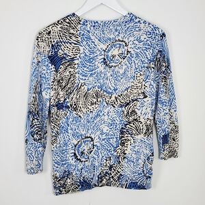 Talbots Sweater Size M Blue Black Abstract Cardigan Button Up Lightweight