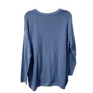 Talbots Sweater Sz XL Ribbed Blue Cotton Rayon Sweater Long Sleeve Pullover