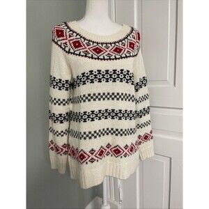 Talbots Sweater Warm Winter Medium Red Black Cream Nordic Fair isle Wool Blend
