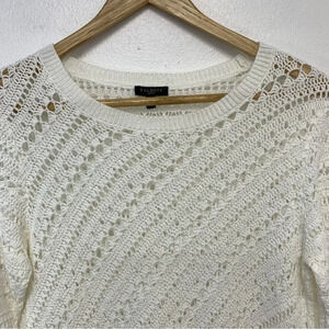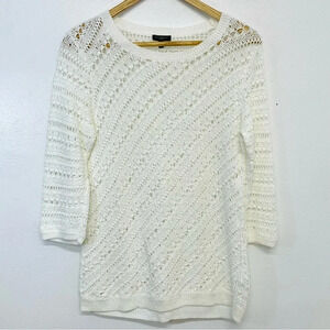 Talbots Sweater Woman MP White Loose Knit Tunic 3/4 Sleeve Beachy Coastal Office