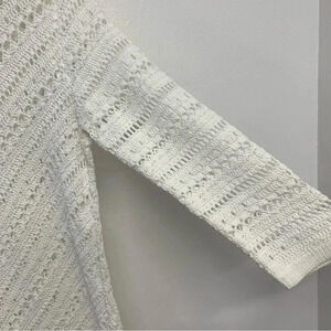 White Loose Knit Tunic 3/4 Sleeve Beachy Coastal Office