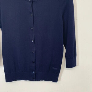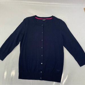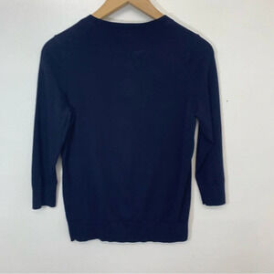 Talbots Sweater Woman Small Pima Cotton Navy Blue Button Up Work Office Travel