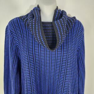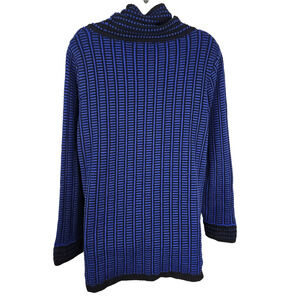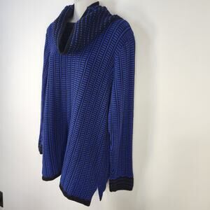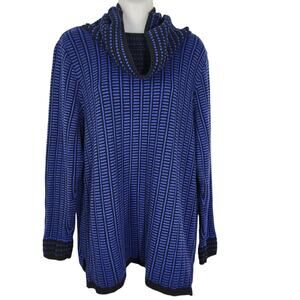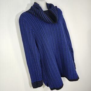 Talbots Sweater Women Large Cowl Neck Pullover Knit Long Sleeve Print Blue Black