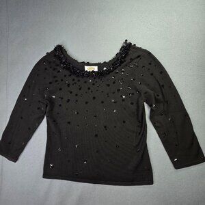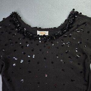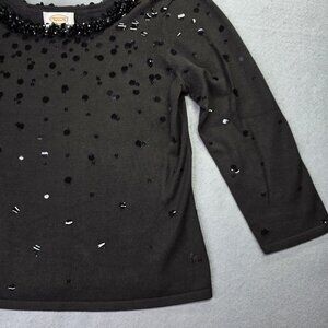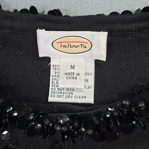 Talbots Sweater Top Women M Black Beaded Sequin Silk Blend Hollywood Glam Holiday