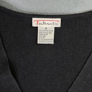 Talbots Sweater Women M Black Cardigan Tunic Button Minimalist Academia Vintage
