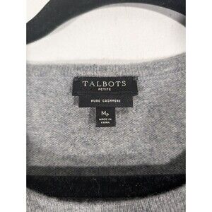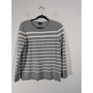 Talbots Sweater Women Sz Petite M Grey Striped 100% Cashmere Crew Neck Pullover