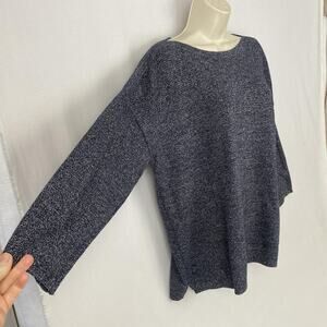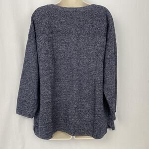 Talbots Sweater Womens 2X Petite Blue Marled Button Shoulder Boat Neck 2XP