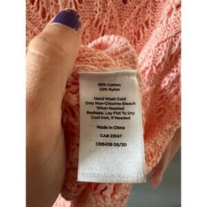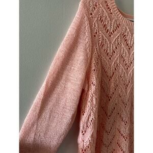 Talbots Sweater Women's 2X Pink Open Knit Pullover Pointelle Chevron Coastal