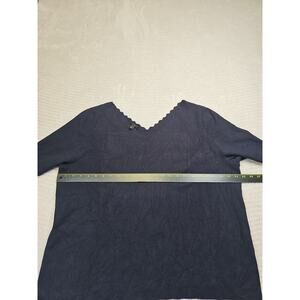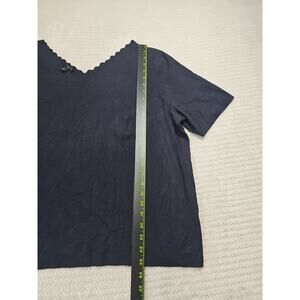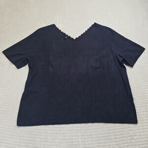 Talbots Sweater Womens 3X Navy Blue Scalloped Neckline Short Sleeve