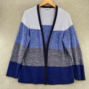 Talbots Sweater Womens XL Blue Colorblock Chunky Knit Open Cardigan Everyday Casual