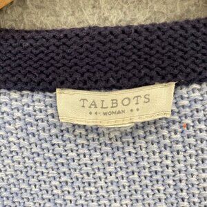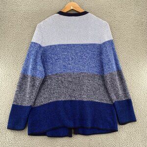 Talbots Sweater Womens Extra Large Blue Colorblock Chunky Knit Open Cardigan