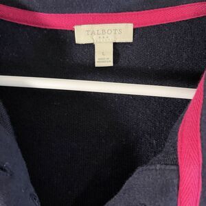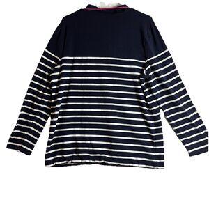 Talbots Sweater Womens L Blue White Striped Long Sleeve Henley Grannycore