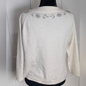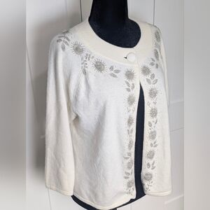 Talbots Sweater Women’s Lambs Wool Angora Cream One Button Cardigan Size L EUC