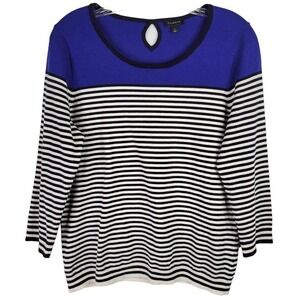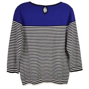 Talbots Sweater Women's Large Blue White Striped 3/4 Sleeve Pullover Sweater