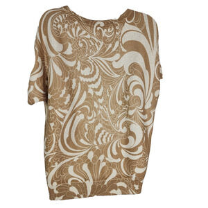 Talbots Sweater Womens Large Metallic Gold Crewneck Twirl Floral Pullover Dolman