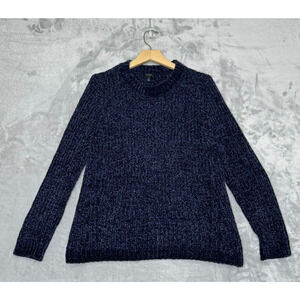 Talbots Sweater Womens Large Navy Blue Chenille Pullover Long Sleeve Crew Neck