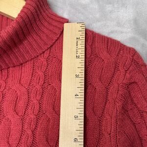 Talbots Sweater Womens Large Orange/Red Cable Knit Turtleneck Petite Angora Blend Pullover