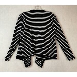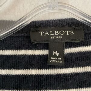 Talbots Sweater Womens M Petite Navy Blue White Stripes Open Front Draped Cotton