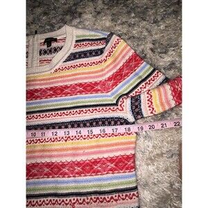 Talbots Sweater Womens M Red Striped Wool Blend Fall