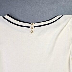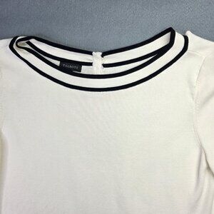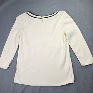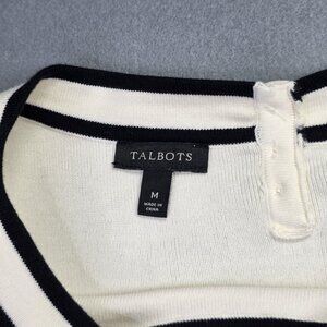 Talbots Sweater Womens M White Black Boat Neck 3/4 Sleeve Cotton Rayon Timeless