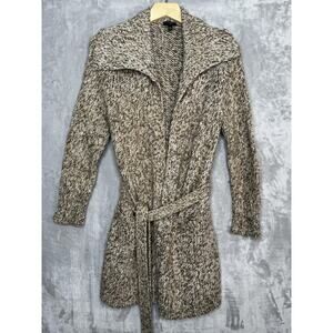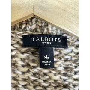 Talbots Sweater Womens Medium Petite Brown Marled Belted Cardigan Shawl Collar