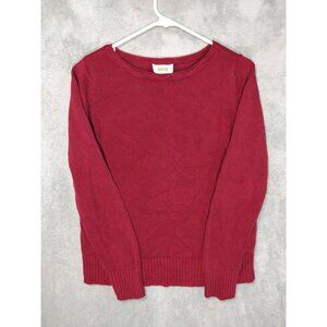 Talbots Sweater Womens Medium Red Floral Silk Round Neck Pullover