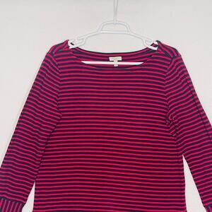 Talbots Sweater Womens Medium Red Navy Blue Striped Boat Neck Knit Top Pullover
