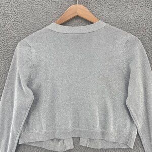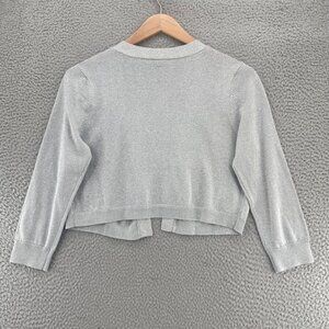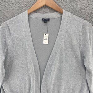 Talbots Sweater Womens Medium Silver Shimmer Shrug Cardigan Stretch Event NWT