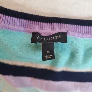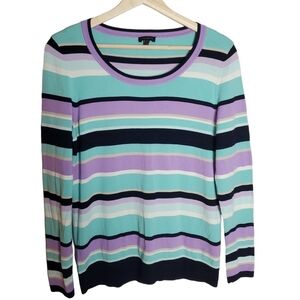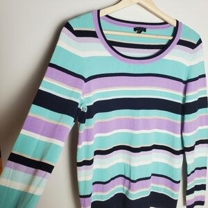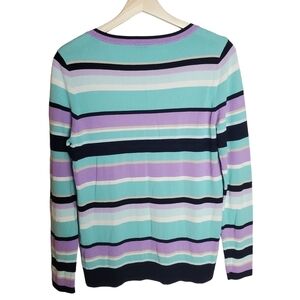 Talbots Sweater Womens Medium Striped Aqua purple Crewneck Lightweight Spring