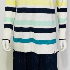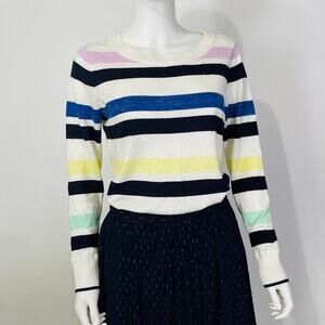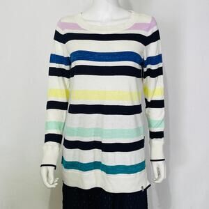 Talbots Sweater Womens Medium White Striped Long Sleeve Soft Stretchy Classic