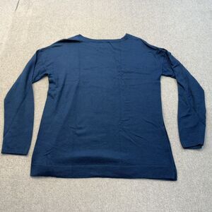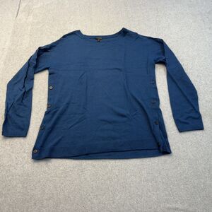 Talbots Sweater Womens Medium Wool Blend Blue Pull Over Button Sides Ribbed Hem