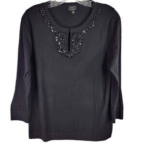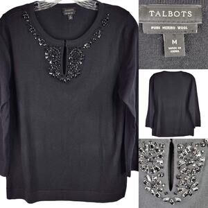 Talbots Sweater Womens Merino Wool Size Medium M Black Beaded Holiday Sparkle