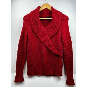 Talbots Sweater Womens Petite 100% Cotton Shawl Collar Red Knit Cozy Classic