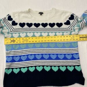 Talbots Sweater Womens Petite 2X Black White Hearts Striped Pullover Love Cute